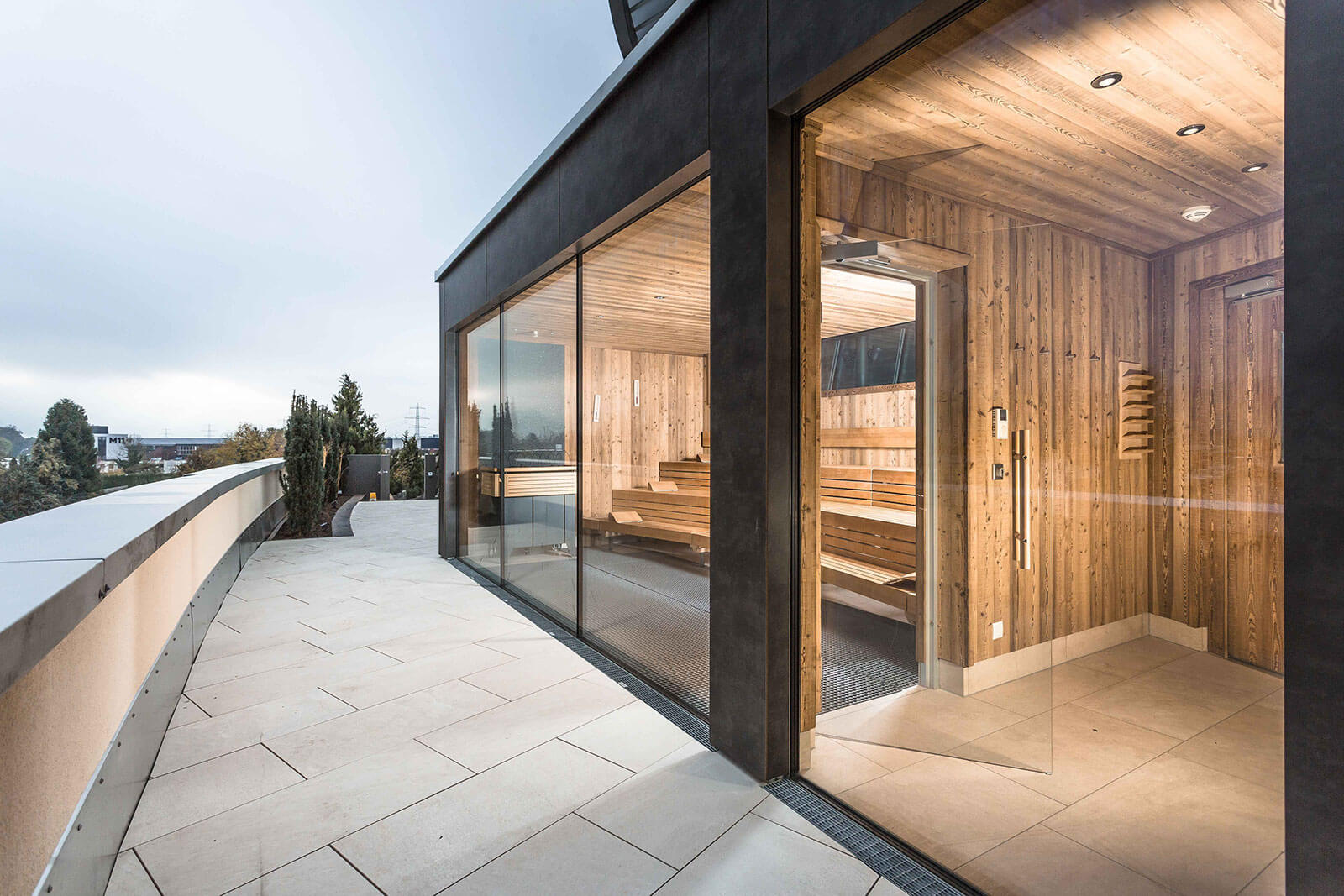 Home > Portfolio > Serene KLAFS Wellness Spa at the Panoramahaus Hotel onlooking the Swiss Mountains