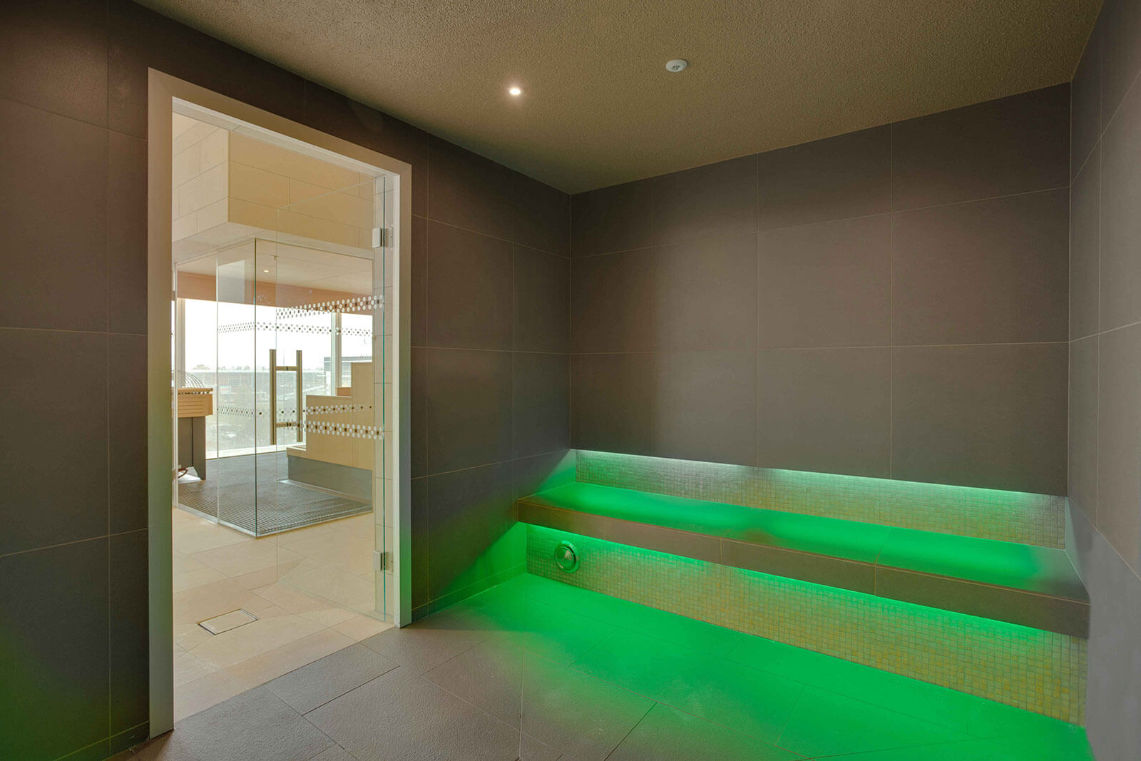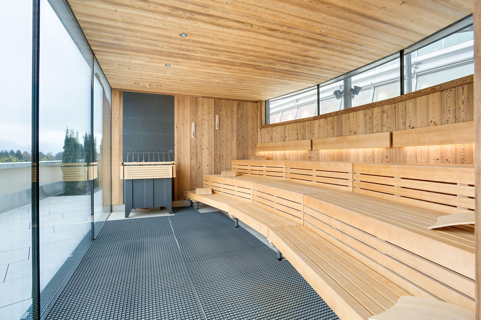 The wellness spa is the heart of the busy Panoramahaus Hotel and creates a heavenly sanctuary of relaxation. KLAFS SANARIUM® Sauna and KLAFS Salt steam bath are essential in creating the perfect oasis of rest. The SANARIUM® feature allows guests to select a bath type to fit their mood including a herbal, tropical or soft steam bath.  The cosy, intimate feel of the KLAFS saunas, allows guests to feel utmost relaxation and self awareness of the body, mind and soul, juxtapose with the vast views of the Swiss Mountains beyond the glass.